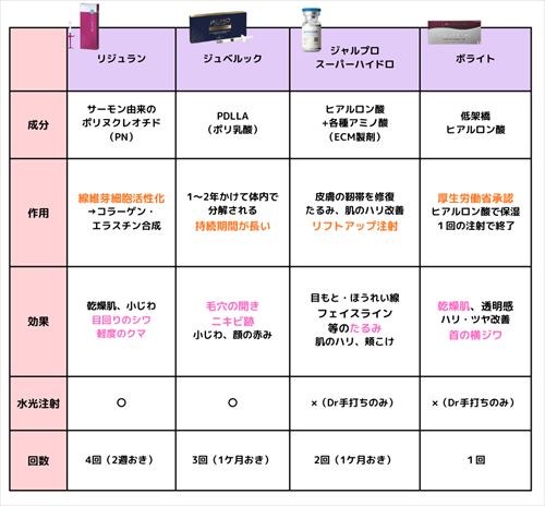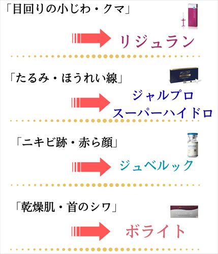 こちらでは各スキンブースターの特徴と、お悩みごとのオススメ薬剤をまとめています。