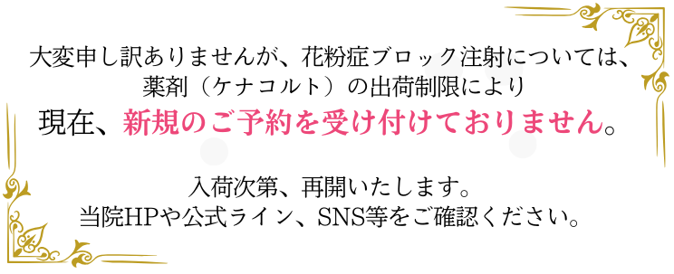 そのような重度な花粉症の方に、花粉症ブロック注射をお勧めしています。