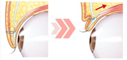 当院では、皮膚と眼瞼挙筋を縫い合わせて、瘢痕により自然な癒着ができる術式を行っています。